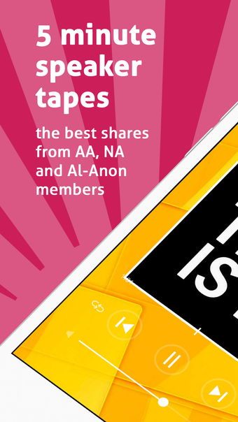 แอปพลิเคชันมีคอลเลกชันที่คัดสรรมาเป็นพิเศษของเทปพูดคุย AA ที่ดีที่สุด โดยการบันทึกแต่ละรายการเน้นไปที่หัวข้อต่าง ๆ เช่น การยอมรับตนเอง การเอาชนะความกลัว การมีสุขภาพจิตที่ดี และการทำงานในโปรแกรม AA แอปพลิเคชันยังให้การแจ้งเตือนแรงบันดาลใจรายวัน ภาพบรรยากาศแรงบันดาลใจที่สวยงาม และการท้าทายเพื่อช่วยให้คุณมีแรงบันดาลใจและมุ่งมั่นในการฟื้นตัวของคุณ